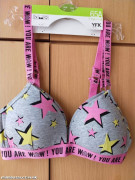 2-balení dívčích podprsenek v krásném vzoru, podklad šedý, růžové a žluté hvězdičky. Nové.