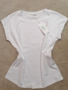 JEDNODUCHÁ ELEGANCE - BÍLÉ TRIČKO, KONCE RUKÁVŮ ZDOBENÉ KAMÍNKY.... NOVÉ VČ VISAČKY, PC 439,- KČ.... VEL. M.... POUZE ZÁSILKOVNA