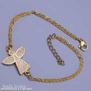 Pozlacený náramek z chirurgické oceli, zdobí Andělíček s čirými zirkony.