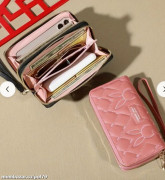 Elegantní peněženka s velkou kapacitou, zipem a 8 přihrádek na karty a více oddělení, elegantní rukověť s řemínkem na zápěstí