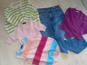 svetřík PULLBEAR nový nenošený, Stradivarius pruhovaný také nový nenošený, pruhovaný MarkSpencer nový, džíny MarkSpencer vel. 38, růžový svetřík MarkSpencer vel m