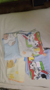 Žlutá s medvídky 71 x 138cm. Zelená s dalmatiny je více používaná, rozměry 100 x 96cm. Modrá s dalmatiny 102 x 98 cm.