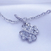 Přívěsek pro štěstí z chirurgické oceli čtyřlístek, je zdoben čirými zirkony.